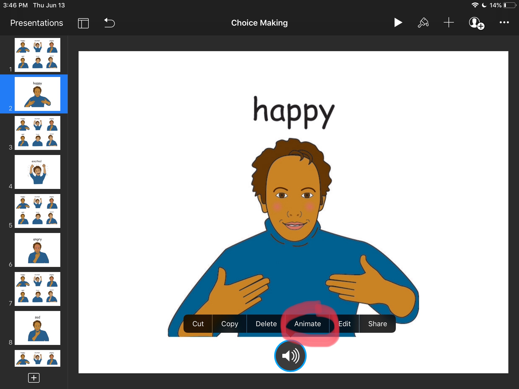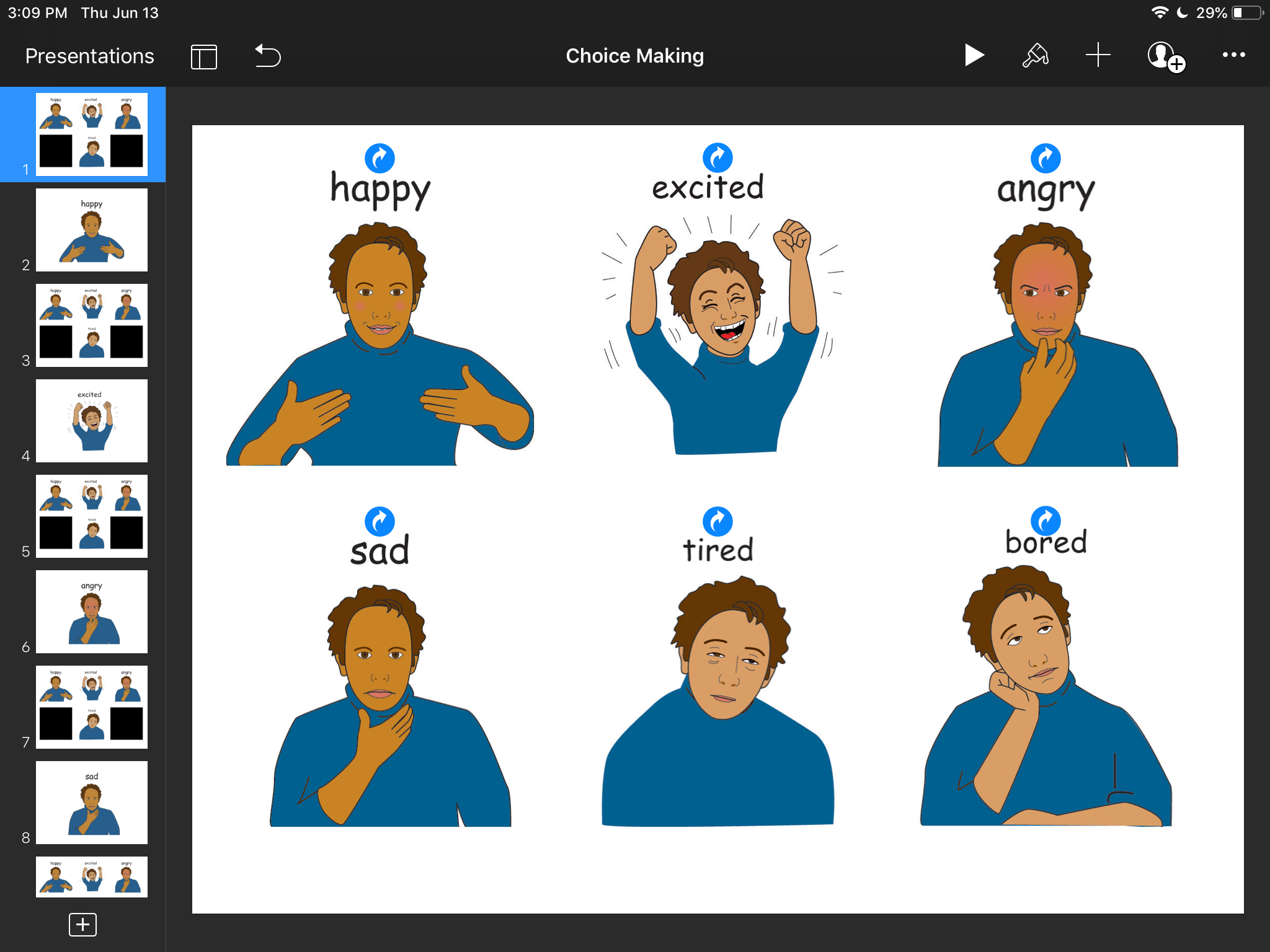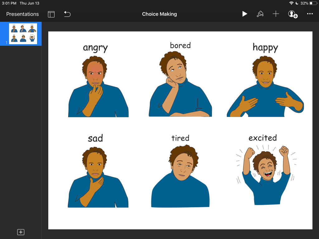 Emotions Choice Board on iPad